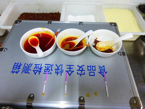 此次整治行動(dòng)中,督查組攜帶了智云達(dá)食品安全快速檢測(cè)箱,對(duì)沃爾瑪、雞汁火鍋等食品流通單位和餐飲單位現(xiàn)場(chǎng)制作的火鍋底料和預(yù)包裝的火鍋調(diào)料、調(diào)味品等6批樣品進(jìn)行了快檢篩查,未發(fā)現(xiàn)有非法添加使用罌粟殼的行為。