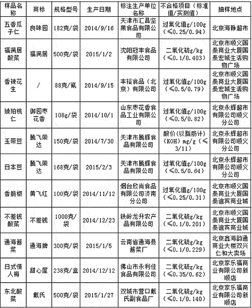 本文關(guān)鍵詞:北京 不合格休閑食品 過氧化值 二氧化硫超標(biāo)