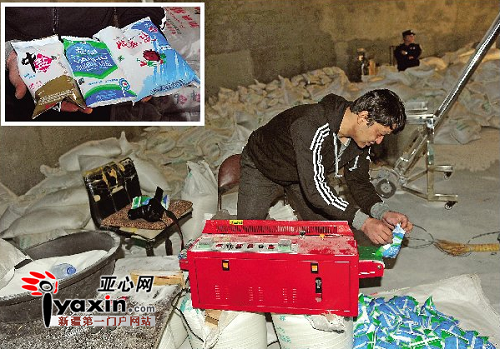 據(jù)介紹,執(zhí)法人員趕到時,7名工人正在生產(chǎn)、包裝假冒偽劣食鹽。他們將假鹽通過分裝機、打包帶等加工設(shè)備分裝成小包裝,充當(dāng)食用鹽售賣。在制假窩點,分裝成小包裝的食鹽有3種,一種是500克重的復(fù)合膜小包裝,包裝袋為白色和咖啡色;一種是500克重的綠色碘鹽,包裝袋為藍(lán)白綠三色;一種為小包裝腌菜鹽。現(xiàn)場加工環(huán)境又臟又亂,根本不符合食品衛(wèi)生標(biāo)準(zhǔn)。