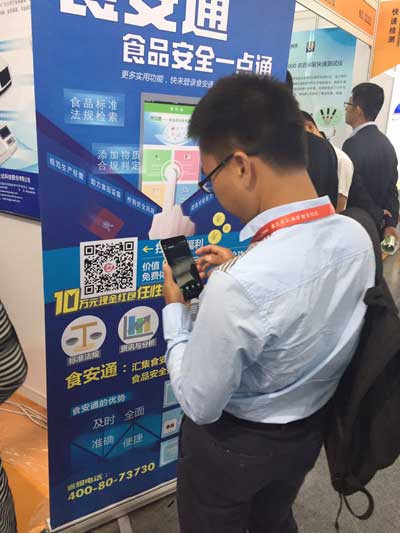 展會首日,現場人山人海,北京智云達展位前早已圍滿參展人群,幾位講解員一一耐心講解、詳細回復參展者提出的問題。本次現場展示新品農藥殘留速測儀、免疫定量分析儀、食品安全檢測儀、快檢速測盒等產品?,F場注冊食安通(食品安全一點通(www.cqa360.com))會員,獲價值9800元/年食安通全功能免費體驗3個月,10萬元現金紅包任性搶等多項優惠活動。