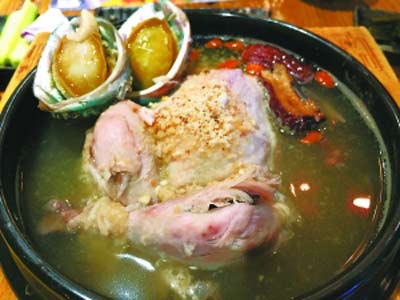 點評:參雞湯是一雞三吃,吃雞腹中的江米、品食材燉出的湯、吃童子雞細嫩的肉質(zhì),就兩家品牌來說,雖均未占全,但各自的優(yōu)點突出。值得注意的是,參雞湯味美,畢竟高麗參及其他添加的食材較為滋補,須注意食用的頻度。