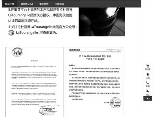 記者看到蜜芽網分別公布了廠家的英文版說明和代理商的中文版說明。千麥實業(yè)(上海)有限公司提供的產品日期說明顯示:由于各國法律及習慣不同,歐盟國家要求食品包裝標注產品最佳使用日期,該公司所引進的拉杜藍喬產品均為原廠同步產品,未對包裝進行任何更改,保留了與歐洲上市產品一致的包裝,且為遵循中國《食品安全法》以及出入境檢驗檢疫要求,要求產商按中國標準標注生產日期,另對產品加貼中文標簽,并在中文標簽注明生產日期與保質期。產商在標注生產日期時亦按通用慣例以P開頭代表生產日期,E 開頭代表保質期截止日以示區(qū)分。特此說明以答所惑。