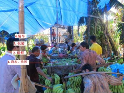 視頻中的香蕉為什么都是青的?王明月說(shuō),香蕉要在七八成熟的時(shí)候進(jìn)行采摘。一般都會(huì)將香蕉置于冰水或涼水中降溫并洗去蕉油,然后置于含有保鮮劑的水池中浸泡數(shù)分鐘進(jìn)行殺菌保鮮處理,晾干后用塑料袋包裝、抽真空、裝箱,然后馬上裝車運(yùn)輸至冷庫(kù)貯存。