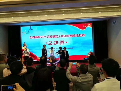 浙江省為全面推進質量強農“八大行動”和國家農產品質量安全示范省創建,加強基層農產品質量安全檢測隊伍建設,切實保障農產品質量安全,于2017年10月25日,由浙江省農業廳主辦的“浙江省全省幾層農產品質量安全快檢技能競賽總決賽”獲得圓滿結束。在這喜迎十九大的日子里,北京智云達助力總決順利開展,與此同時,在賽前農業廳征集的農藥殘留快速檢測設備大比武中,智云達脫穎而出,拔得頭籌!